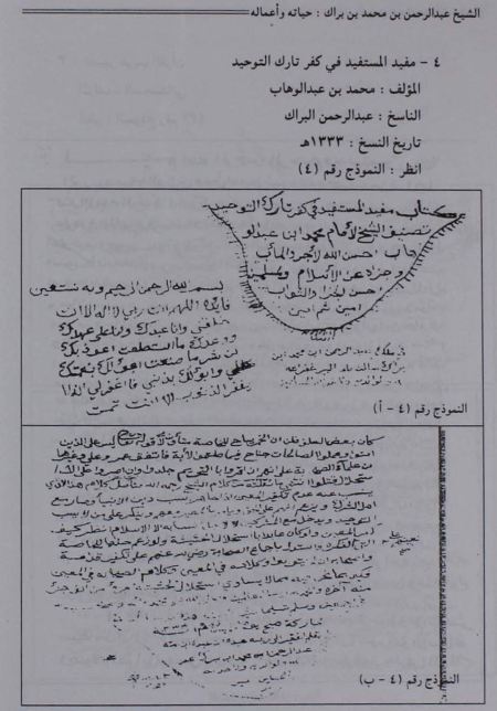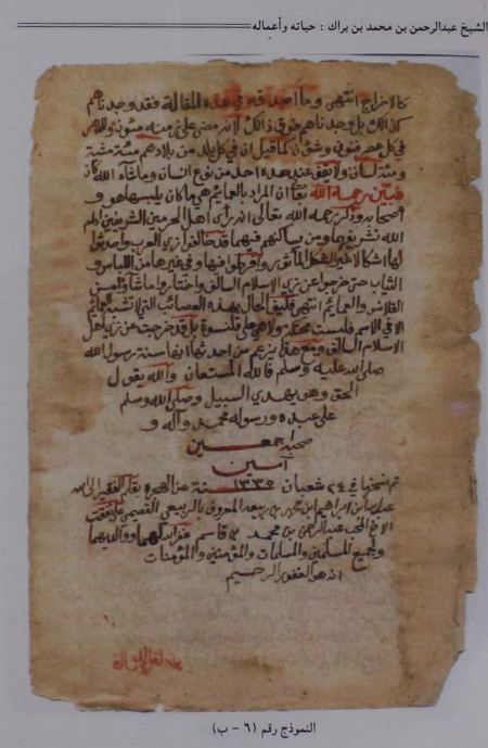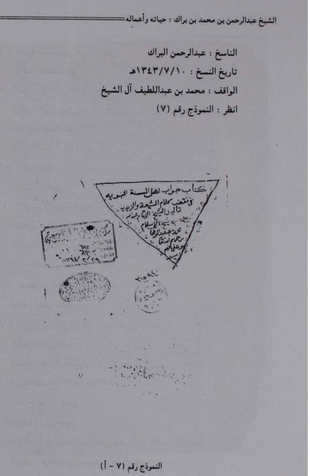 المؤلف : عبدالله بن محمد بن عبدالوهاب ، الناسخ : عبدالرحمن البراك ، تاريخ 10 \ 7 \ 1343هـ