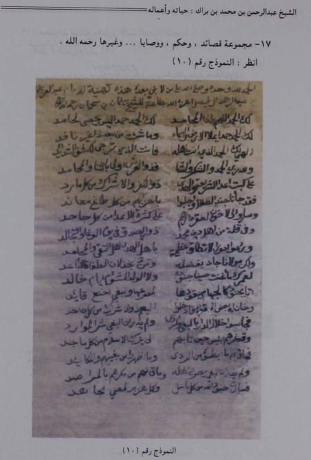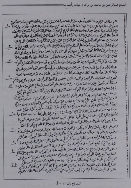 دون الشيخ عبد الرحمن البراك هذه الفتاوى والرسائل بخطه البديع المحرر فبقيت ولولا ان الله يسر لها هذا الرجل الهمام الحريص المحتسب لضلت بيداء التاريخ وانتهبتها عوادي الأيام فقدت كما فقد غيرها من اثار العلماء والاعلام