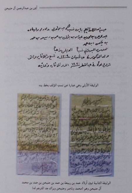 - انظر تاريخ الفاخري ( 68، 115 ، 120 ) ، وعنوان المجد في تاريخ نجد لابشر (2/ 306 ) (2/ 341) (2/354) (2/355) ، وتاريخ ابن عيسي ( 50 ، 72، 76 ، 86، 87 ) وجمهرة انساب الاسر المتحضرة في نجد لحمد الجاسر (1/176 -177 ) ، وانظر التنبية حول كلمة (حنيحن ابن يحيا ) في مجلة العرب ج 1،2، ص 35 _ رجب ،شعبان سنة 1430هـ ص (91) وغيرها من المراجع التاريخية ، وانظر ، النموذج رقم (1)